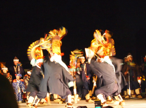 えんぶりは、その年の豊作を祈願するための舞で、太夫と呼ばれる舞手が馬の頭を象った華やかな烏帽子を被り、頭を大きく振る独特の舞が大きな特徴です。