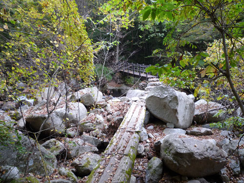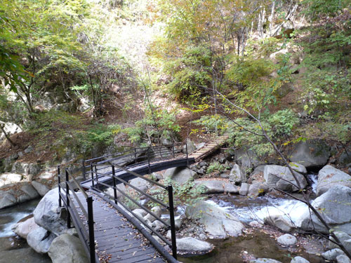 渓谷にかけられた木橋 ちょっとドキドキ!