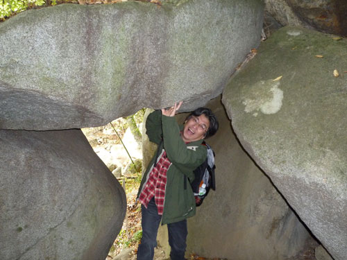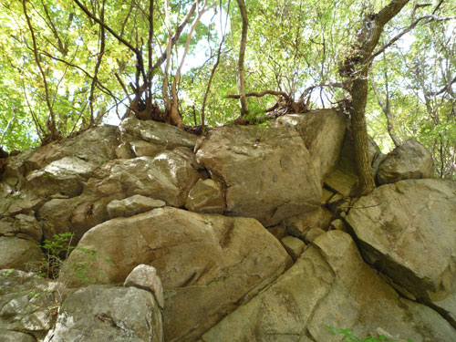 岩山の横を歩き・・・落石注意!
