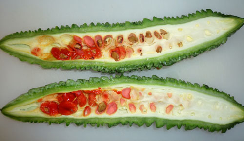 翌日、調べてみたらゴーヤは熟すと種の部分が赤くなって、