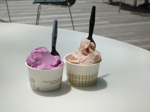 本格的なジェラード 右:巨峰コンポート 左:トマトバジル