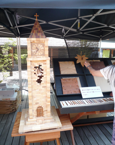 さまざまな木で作ったハンドメイド時計を販売していました。
