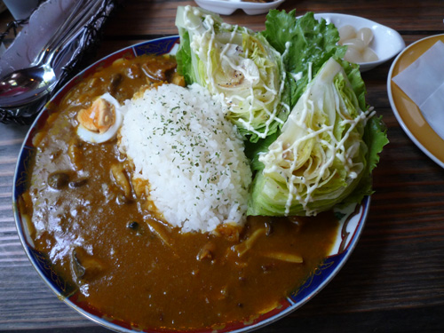 カレーにレタスが半分のってます!